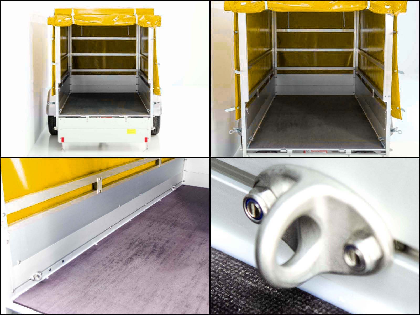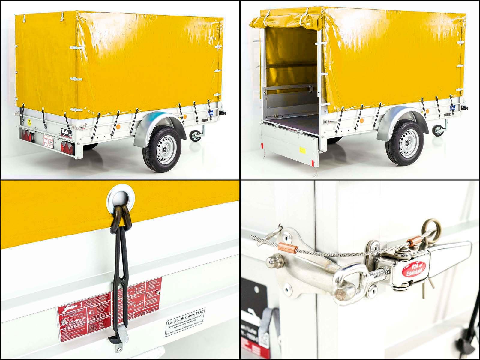 El remolque Koch Tipo U4 en amarillo ofrece dimensiones compactas y es ideal para transportes ligeros a medianos con una carga útil máxima de 570 kg y un peso total permitido de 750 kg. Convince por muchas características de alta calidad que no son comunes incluso en remolques más pequeños:
