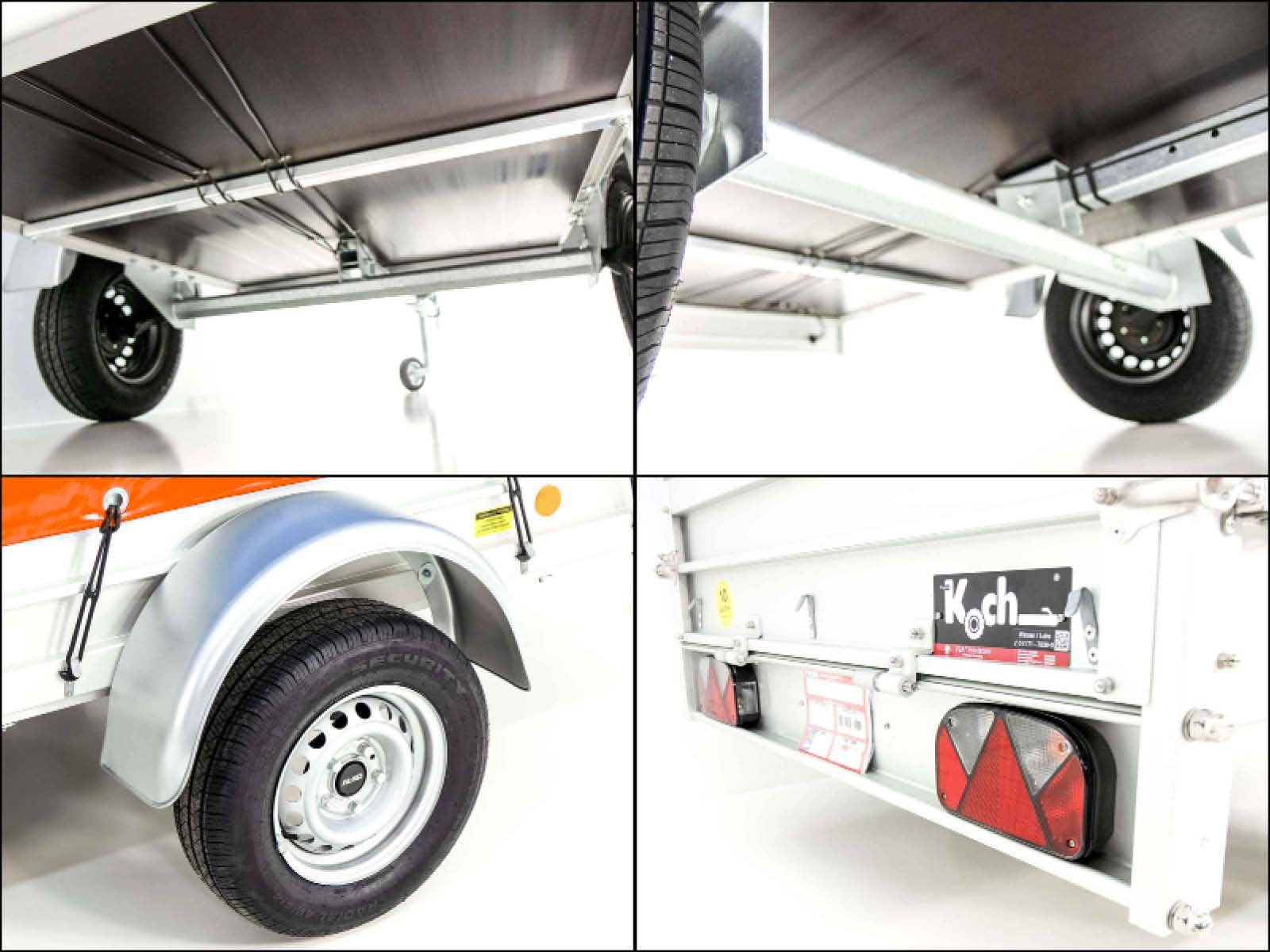 Remolque Koch con lona 125x250cm 750kg | tipo U4 | lona alta 140 cm profesional | naranja