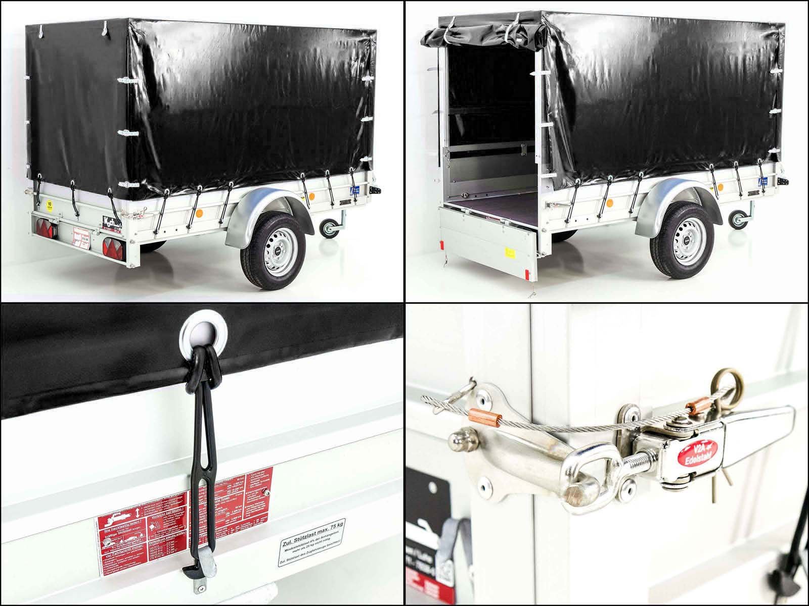 Remolque Koch con lona 125x250cm 750kg | tipo U4 | lona alta 140 cm profesional | negro