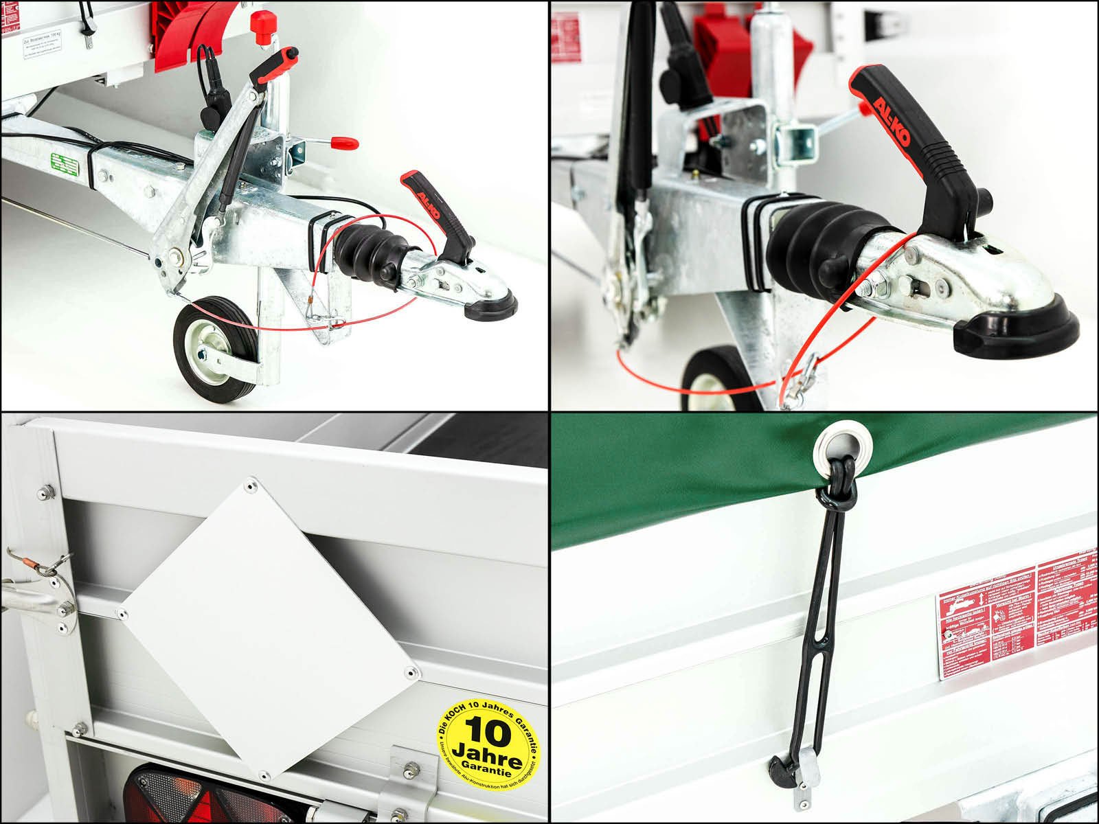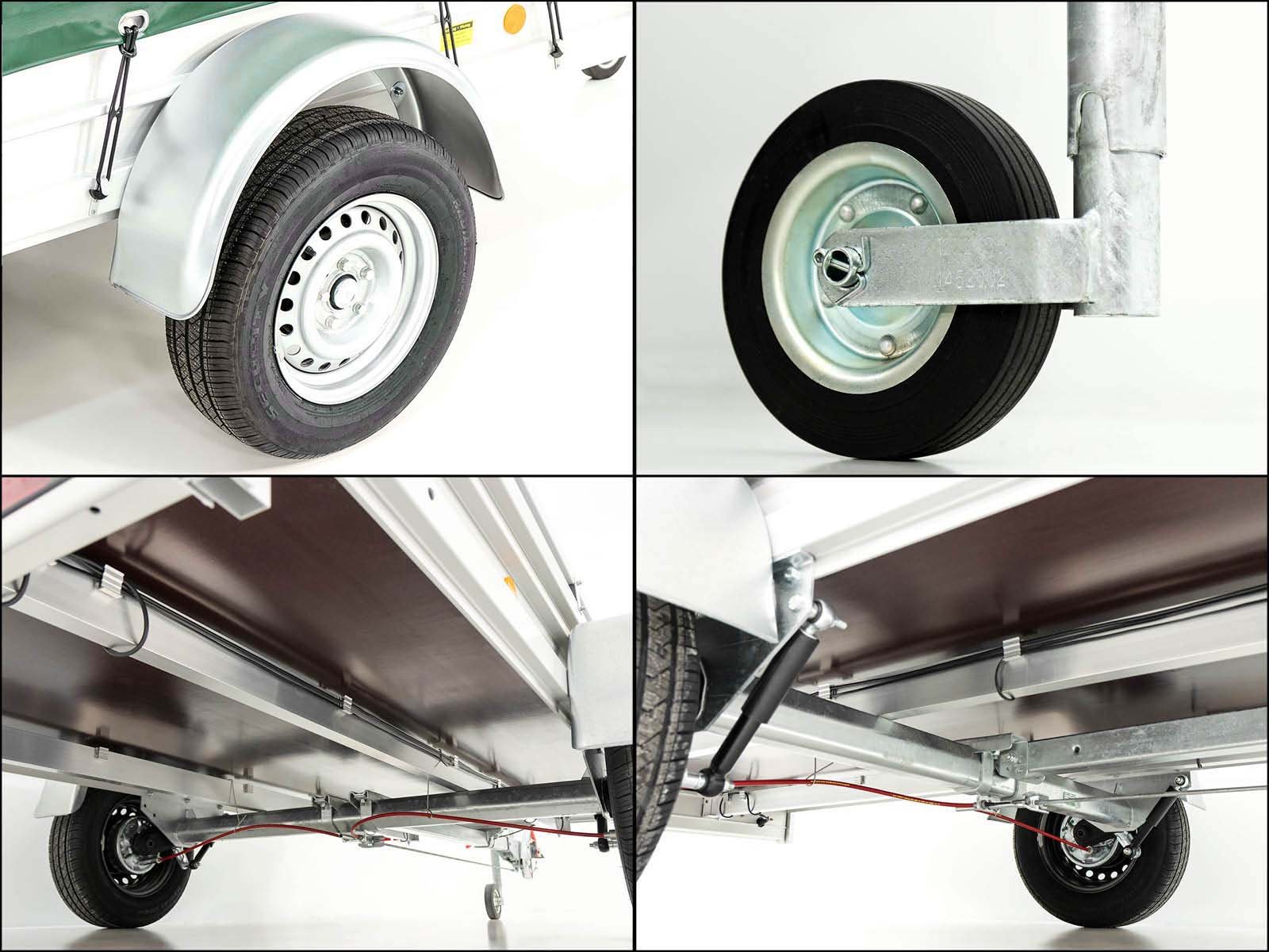 El remolque Koch Tipo 7.13 en verde ofrece una carga útil de 1020 kg y un peso total permitido de 1300 kg. Este remolque es ligero, robusto y especialmente adecuado para el transporte de cargas medianas. Está equipado con un borde de aluminio de alta calidad y un sistema de sujeción de carga de acero inoxidable. Otras características: