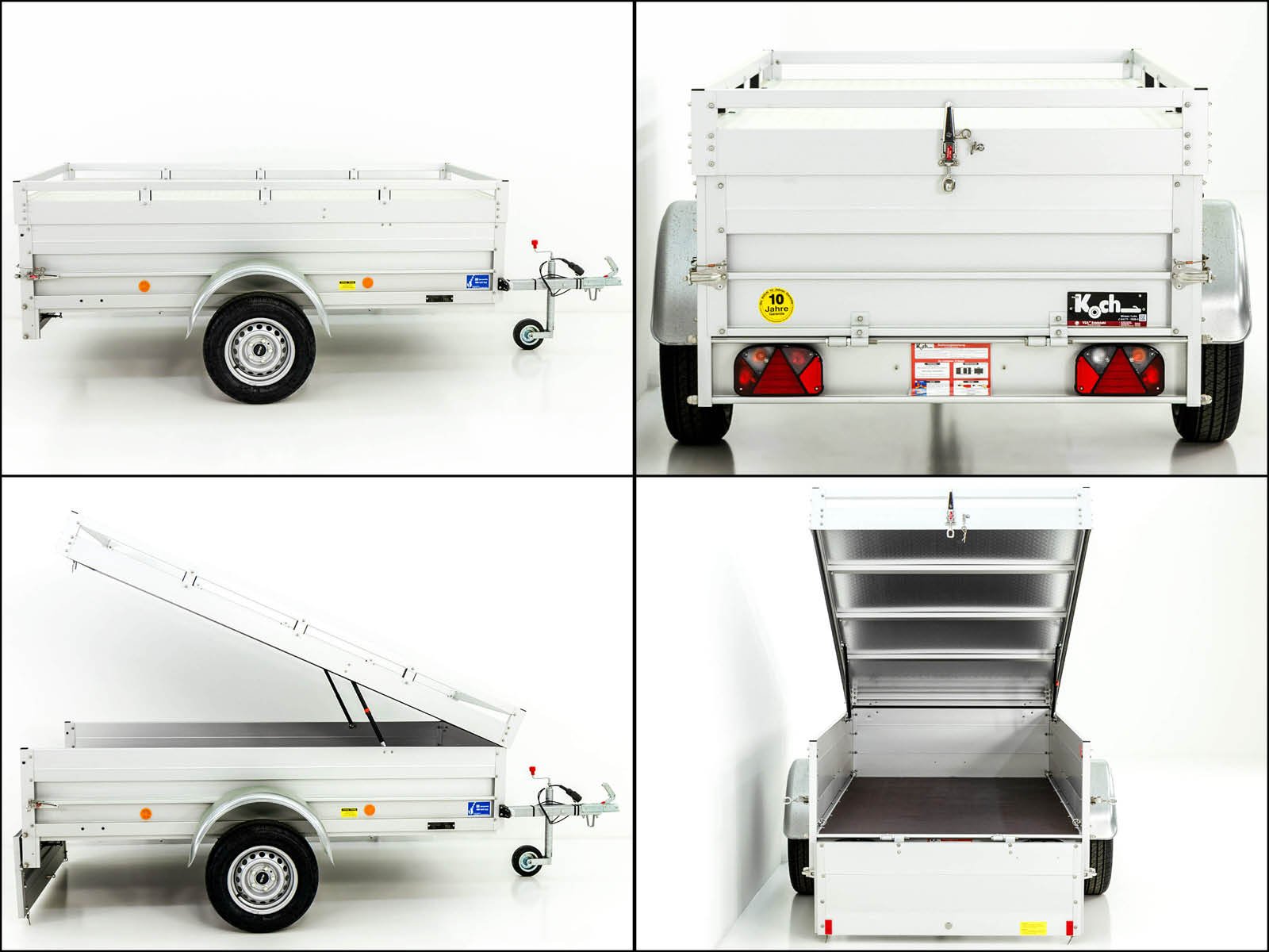 El remolque de tapa Koch tipo U2 con un espacio de carga de 105 x 205 x 65 cm es un remolque de aluminio ligero y estable. Ofrece una alta capacidad de carga de 620 kg con un peso total permitido de 750 kg. Ideal para transportes versátiles, el remolque se entrega con una garantía única de 10 años. Koch-Anhängerwerke fabrica estos productos de calidad en Alemania y ofrece más de 30 años de experiencia en la producción de remolques.