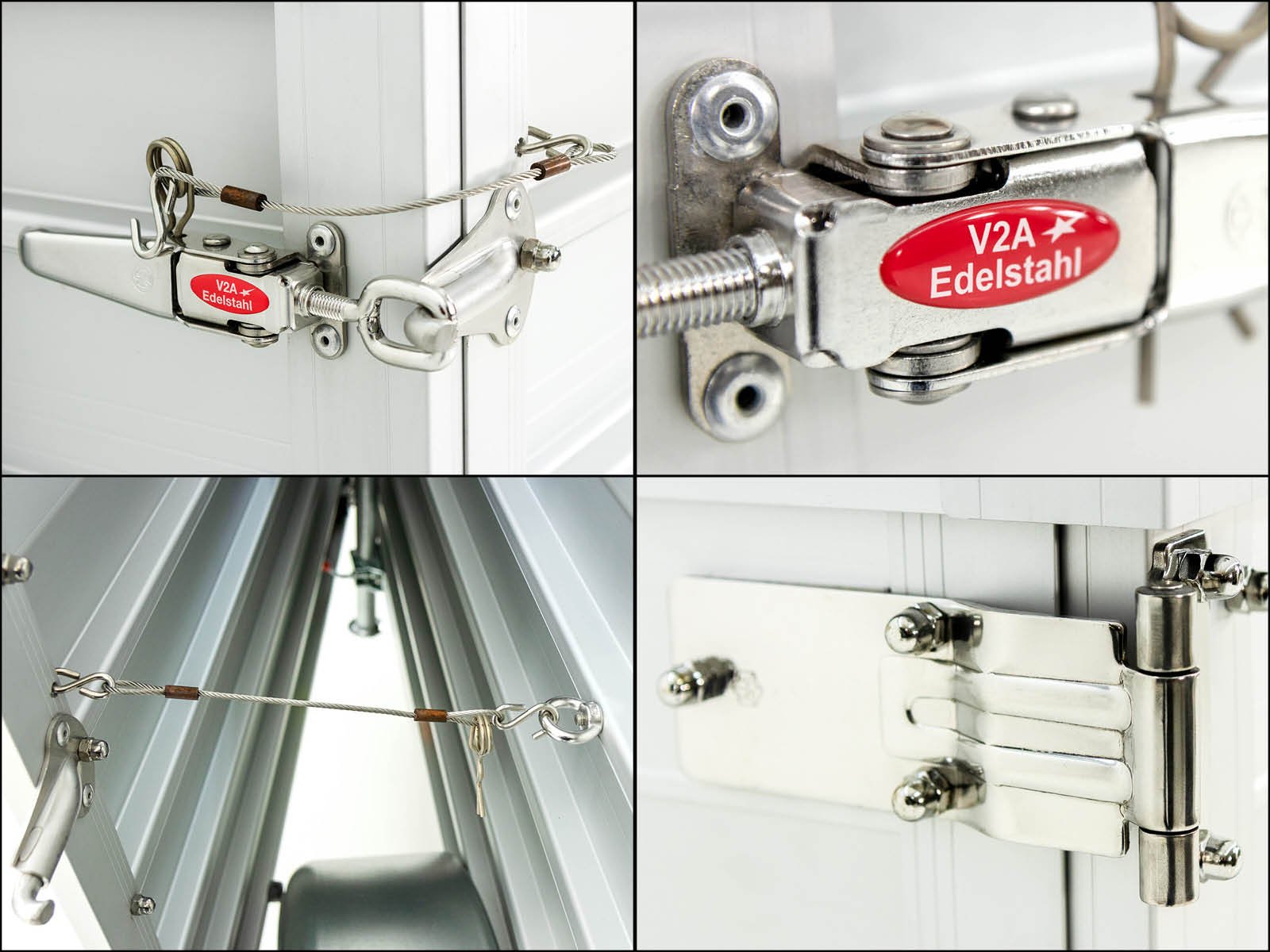 2 bisagras de acero inoxidable V2A en la parte delantera