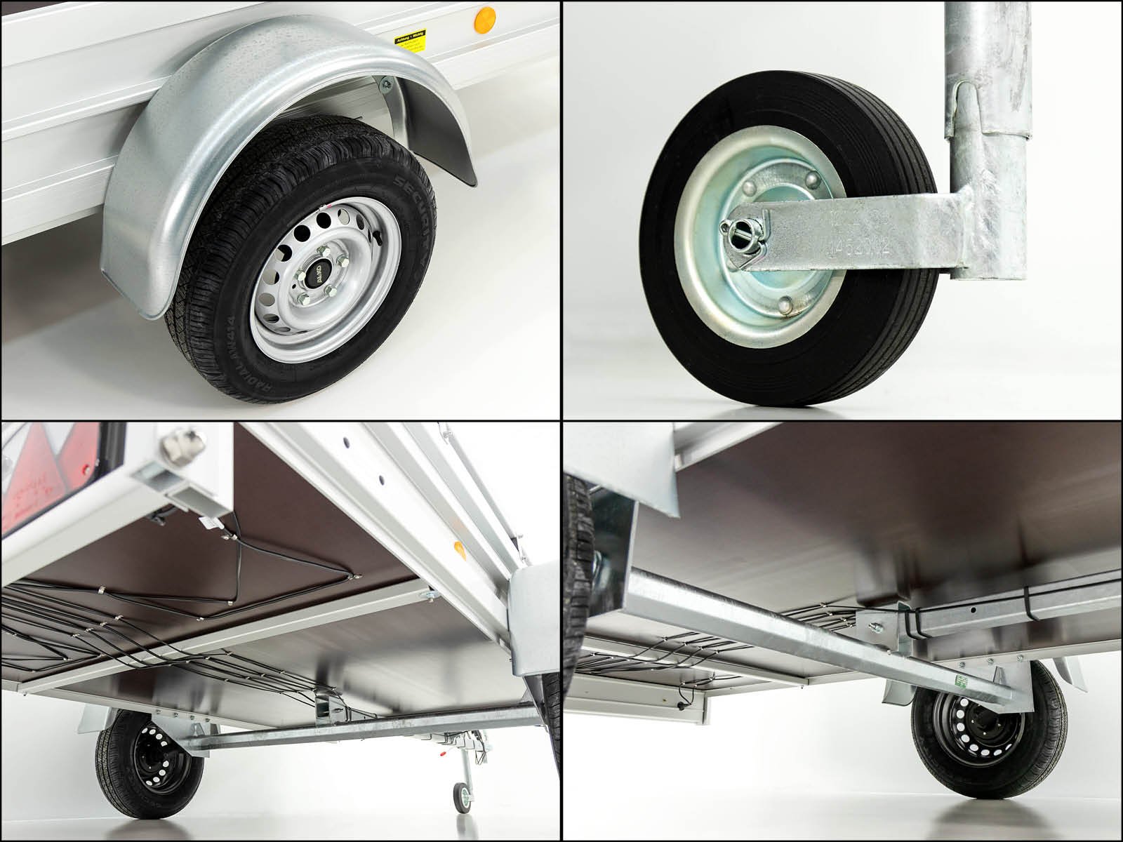 Accesorios disponibles por un costo adicional (por ejemplo, suelo de aluminio completo, aumentos de bordes laterales hasta 125 cm de altura interior, caja de herramientas montada en el enganche)
