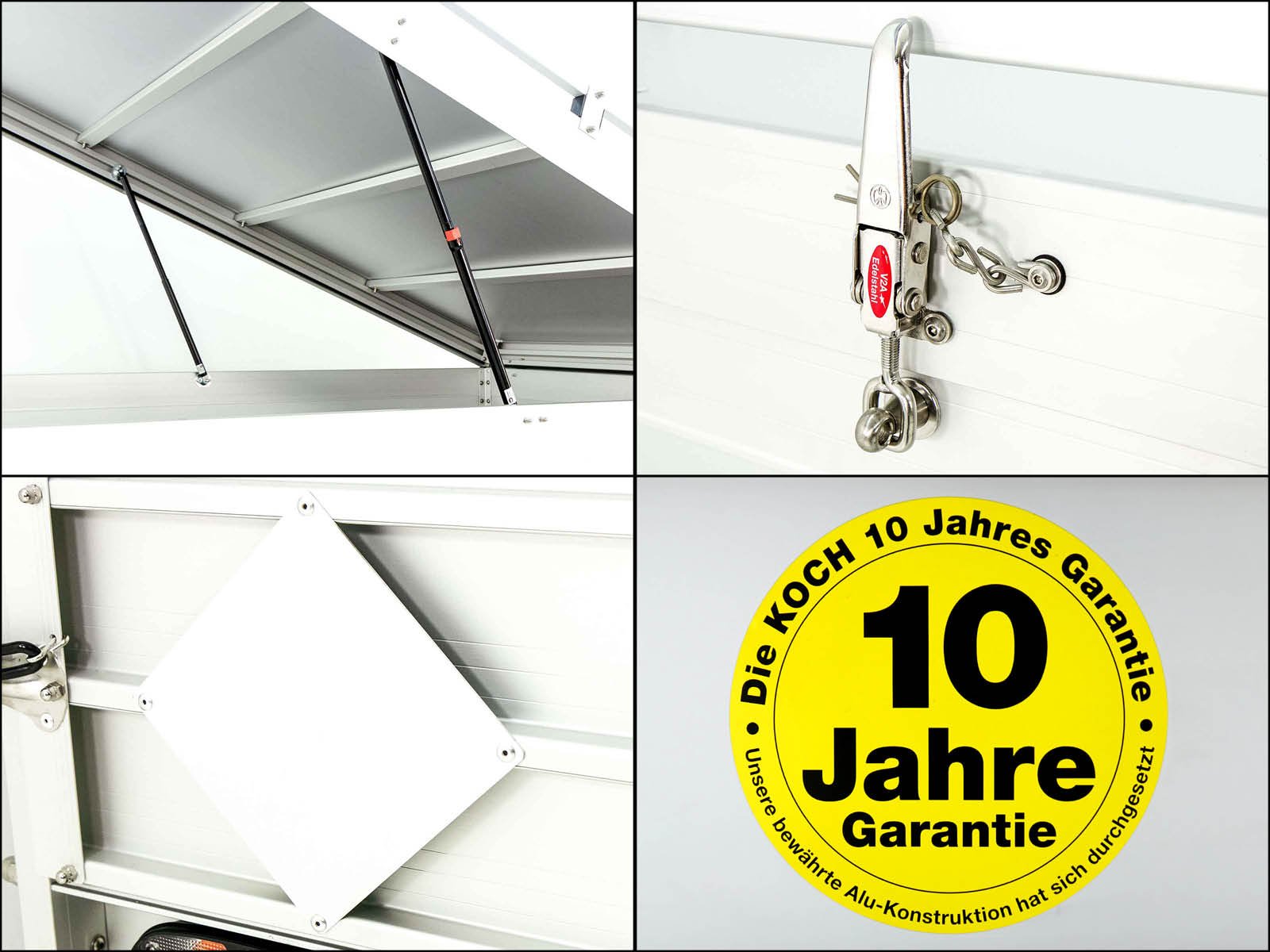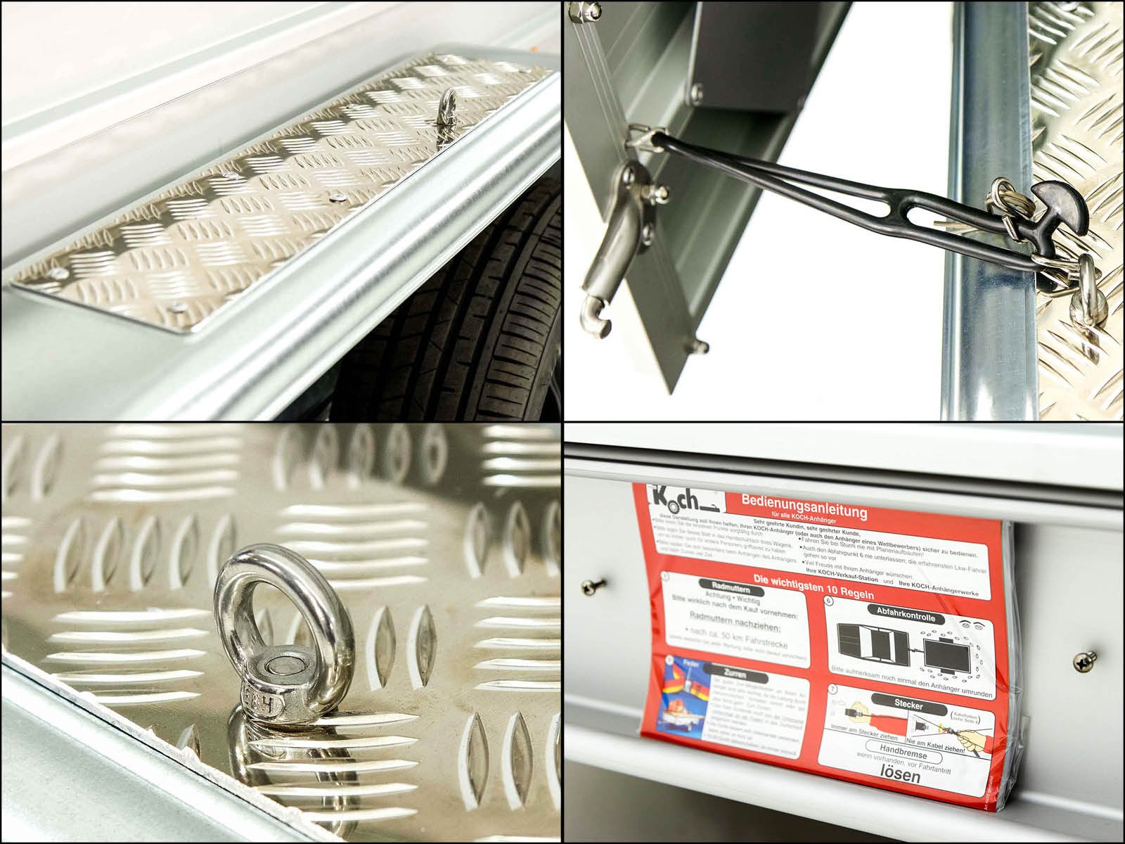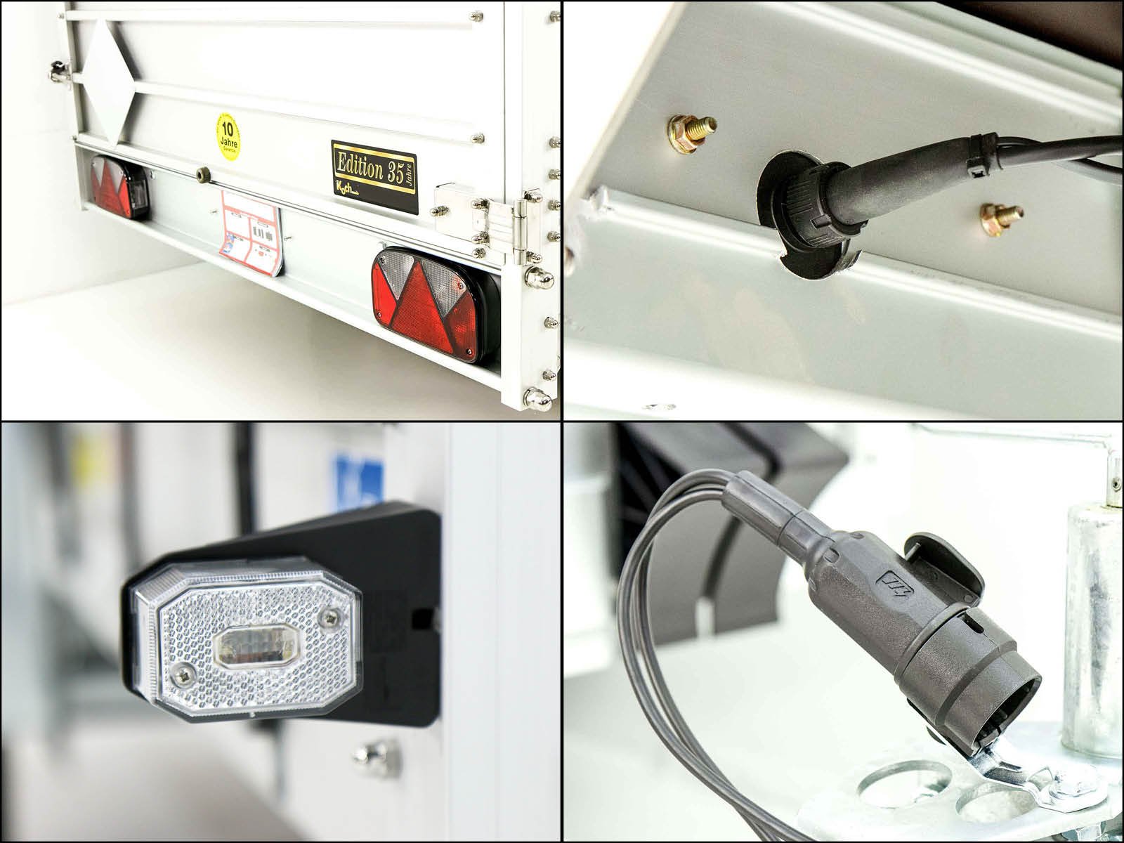 El remolque de cubierta Koch « Edición 35 » con unas dimensiones de carga de 150 x 300 x 125 cm y un peso total permitido de 2600 kg es un remolque ligero de aluminio con una capacidad de carga útil de 2100 kg. Este remolque se fabrica desde hace más de 35 años en Koch-Anhängerwerken en Alemania y le ofrece calidad y durabilidad.