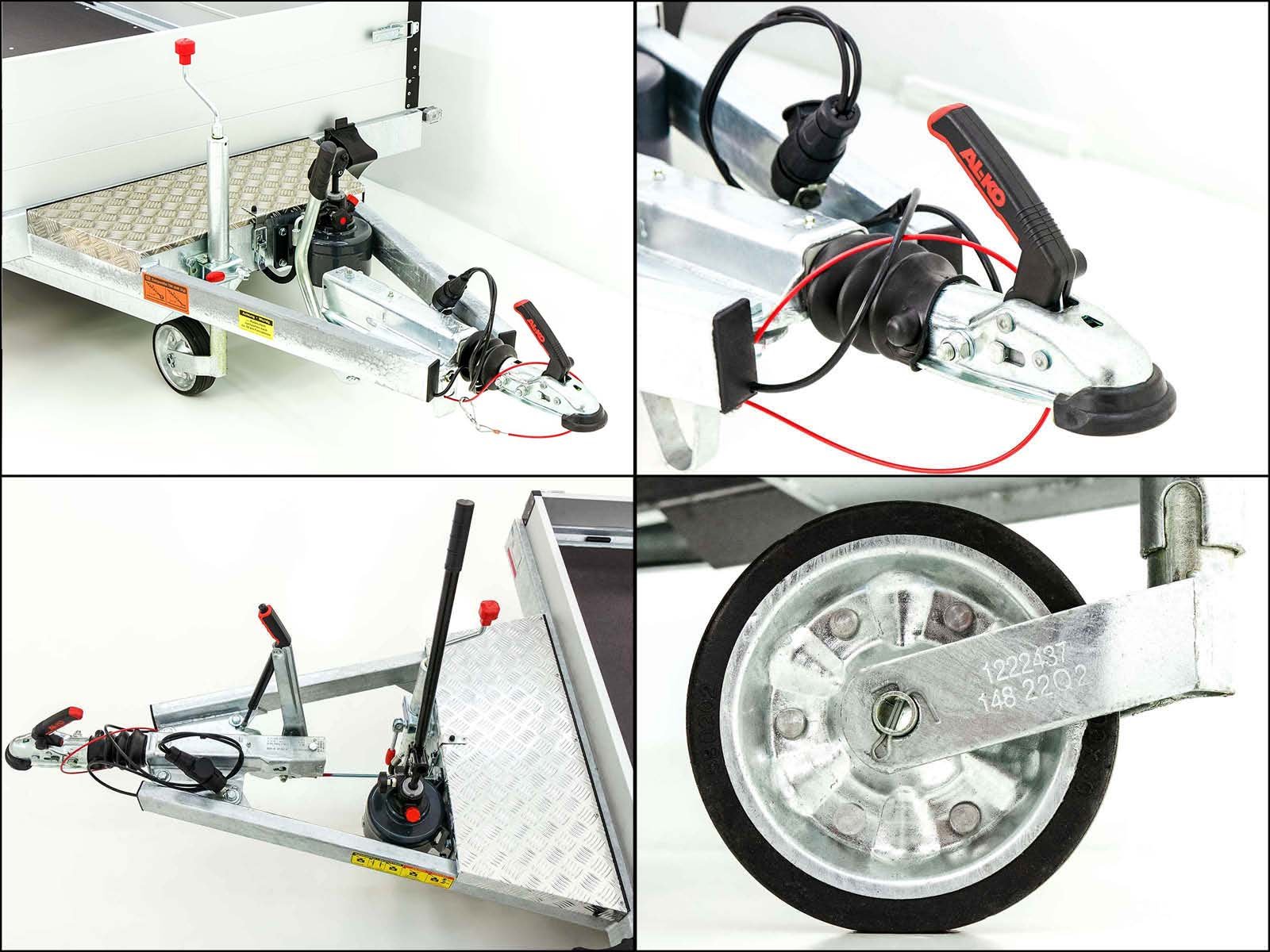Chasis Eje de resorte de goma, enganche en V con acoplamiento de bola, rueda de apoyo